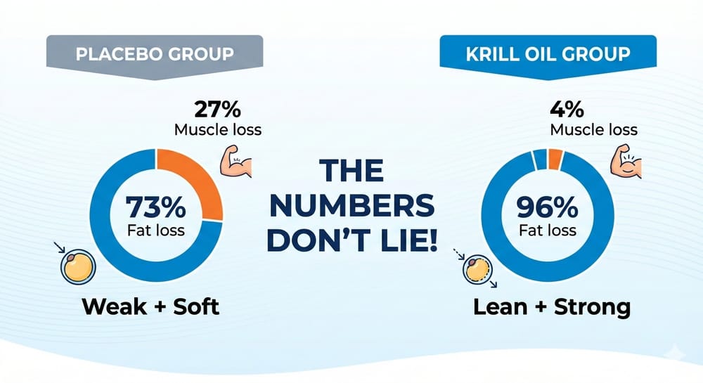 Krill Oil Group: 96% fat loss - and only 4% muscle loss.